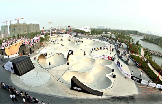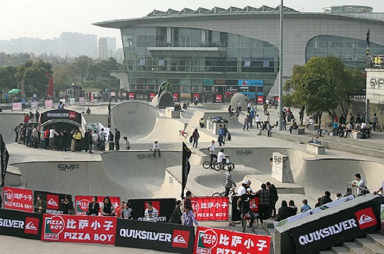 新江灣城SMP滑板公園擁有深度從 一米 到近 六米 的七個形狀各異的碗池、世界最大 四十六米 長的 U 型槽、世界級的街區(qū)以及可容納近三千名觀眾的露天體育廣場。